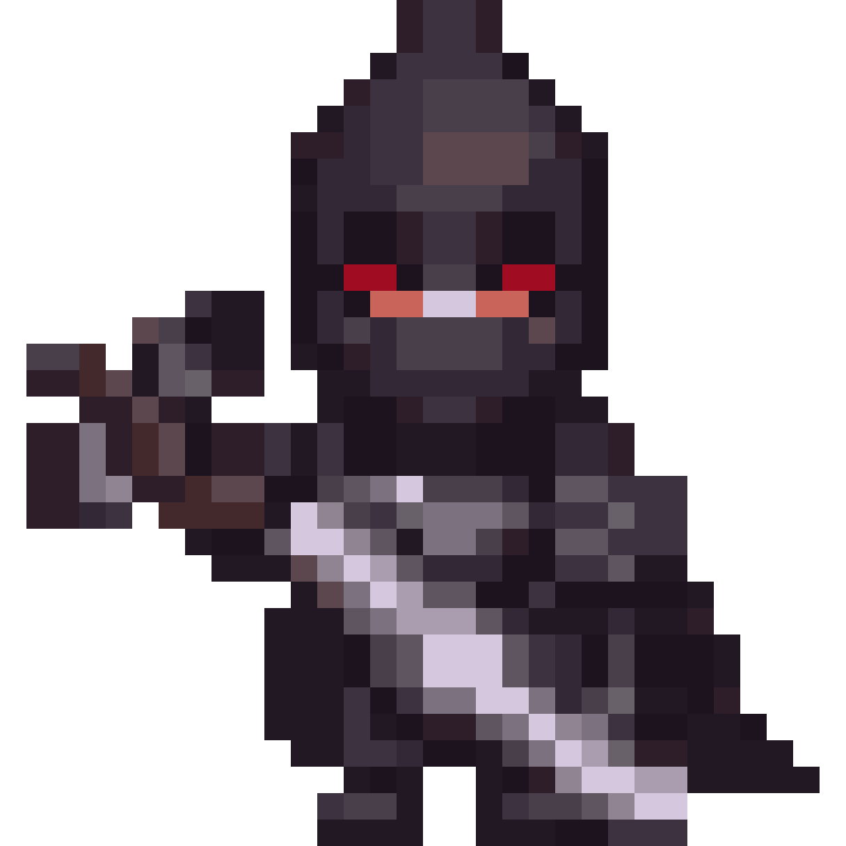 32x32 pixel art sprite, front view, centered character, full body dark fantasy knight named Azazel, wearing black armor...