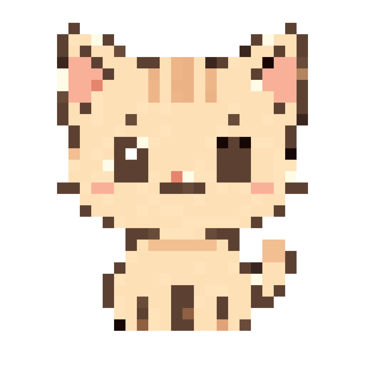 A cute virtual pet cat for a mobile game app, chibi style, slightly big head and eyes, small body, soft pastel colors, c...