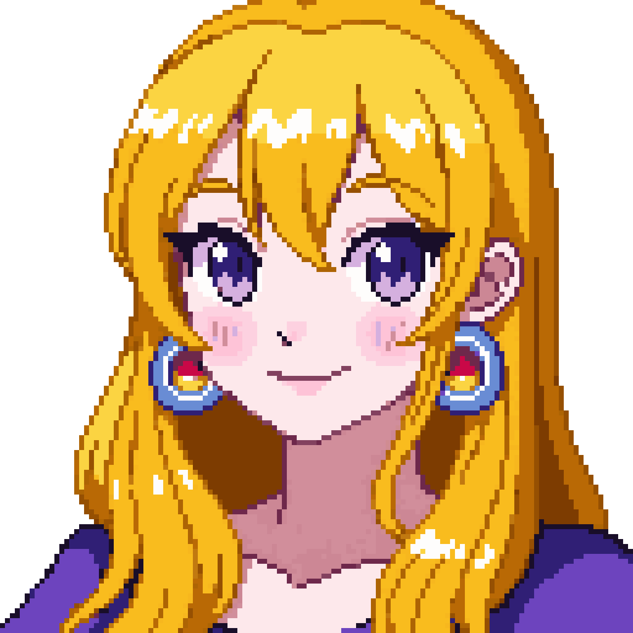 96x128 pixel portrait, classic Super Nintendo 16-bit style, beautiful young woman portrait, long flowing golden-blonde h...