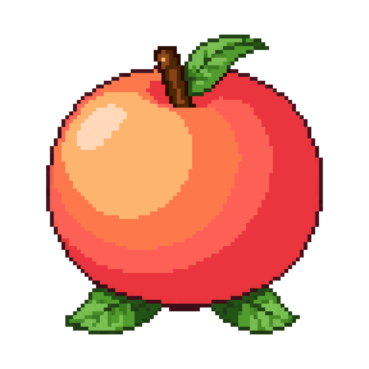 A 74x74 pixel art game sprite, front view of a plump, juicy peach with a “celestial peach” feel, inspired by Touhou Proj...