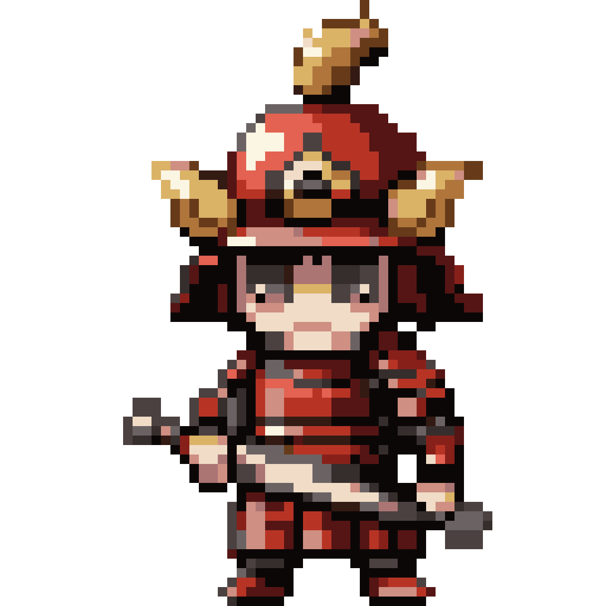 Create a 2D top-down perspective character sprite of a feudal Japanese Samurai warrior in a clear 'Funko Pop' / 'Chibi' ...