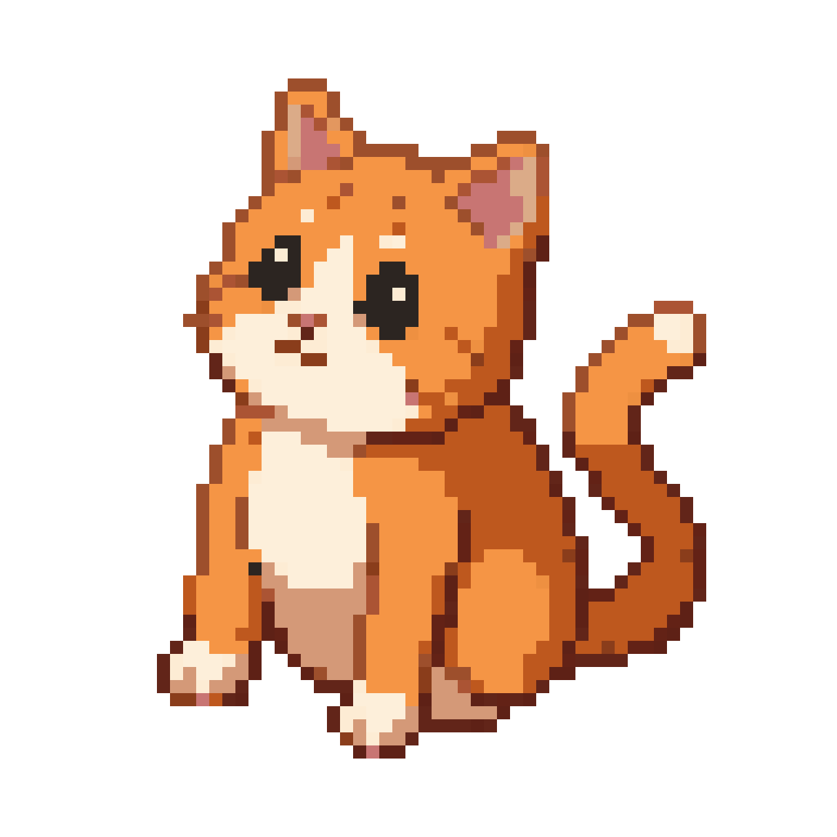 A simple, cozy, slightly chubby domestic ginger tabby cat, sitting down and looking forward, classic 16-bit pixel art st...