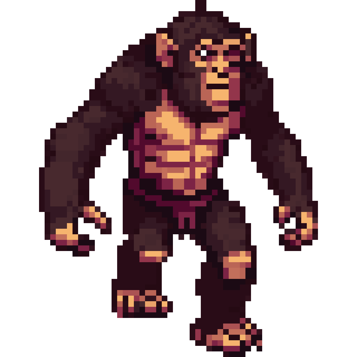 Create a classic retro 2D isometric of a very primitive early hominid primate (Australopithecus / early Homo stage) for ...