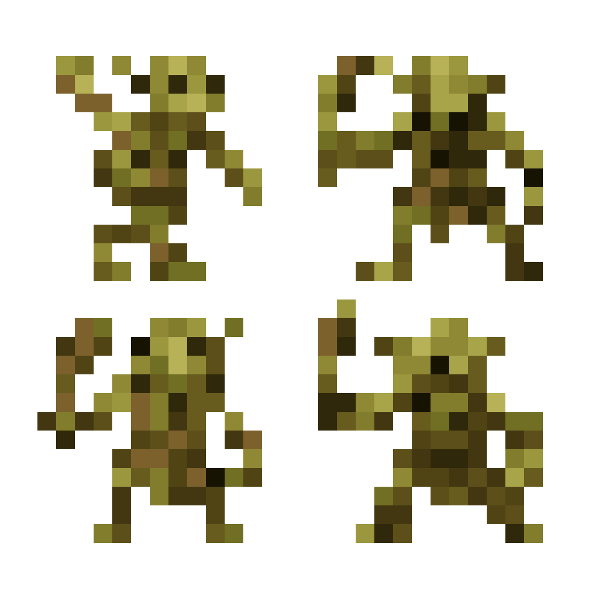 Create a goblin with a clave in one hand. Make some frames with him walking and some frames with him attacking with his ...