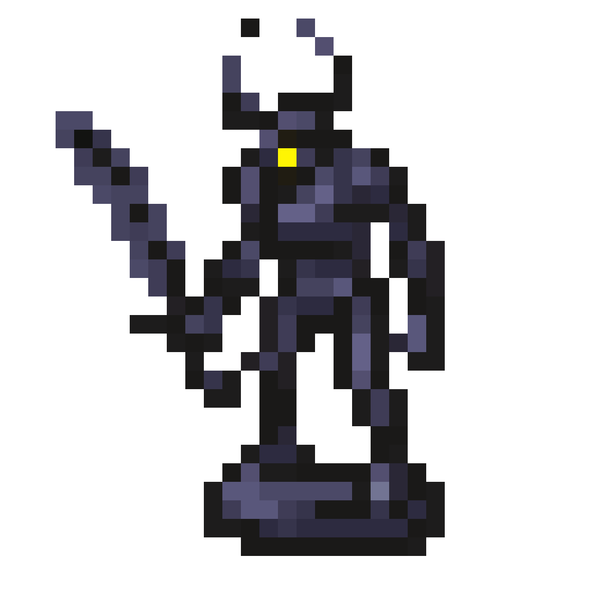 cursed imp statue, cracked stone body, faint yellow glow in eyes and sword, holding a very curved blade, hunched and men...