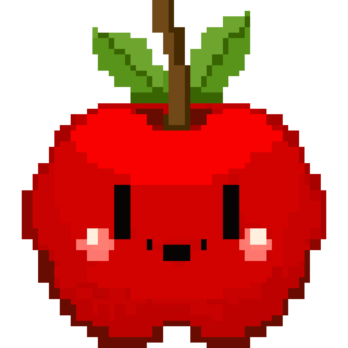 A cute pixel art apple character, top-down game style, simple round red apple with a small green leaf, expressive face (...
