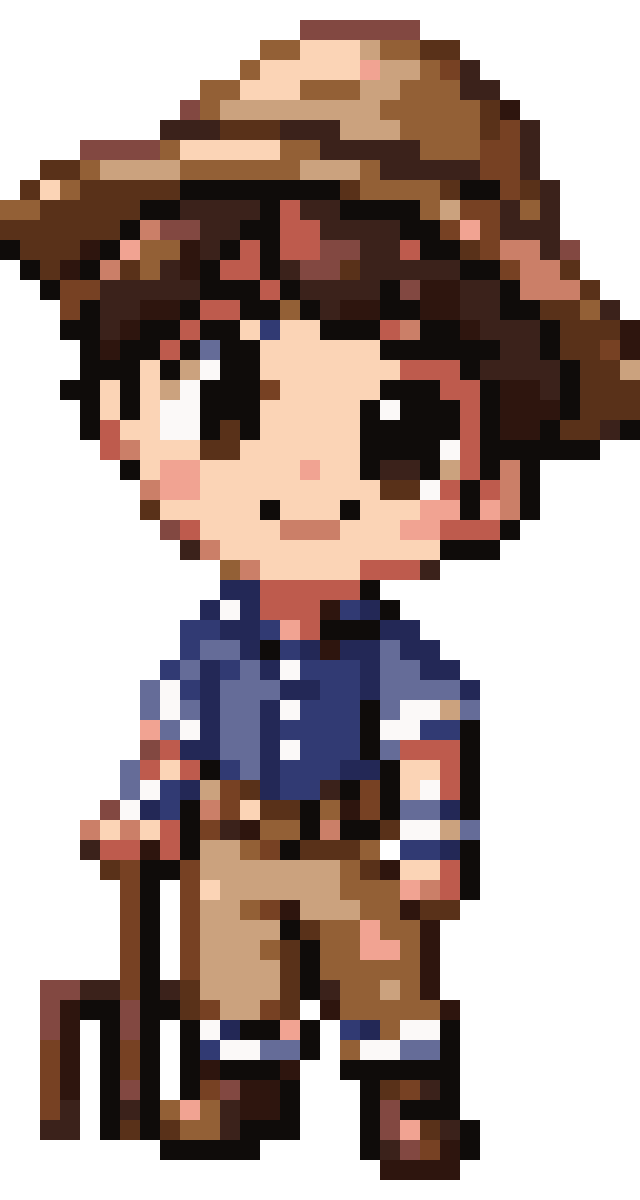 Chibi pixel art character , ultra-cute 20 color palette max, top-down 30° angle view, big head small body classic chi...