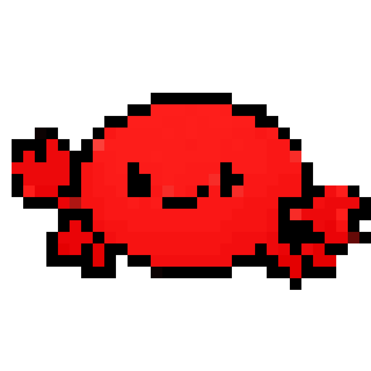 32x32 pixel art, cute crab monster, round red body, two tiny pincer claws, small beady eyes, simple smile, sideways scut...
