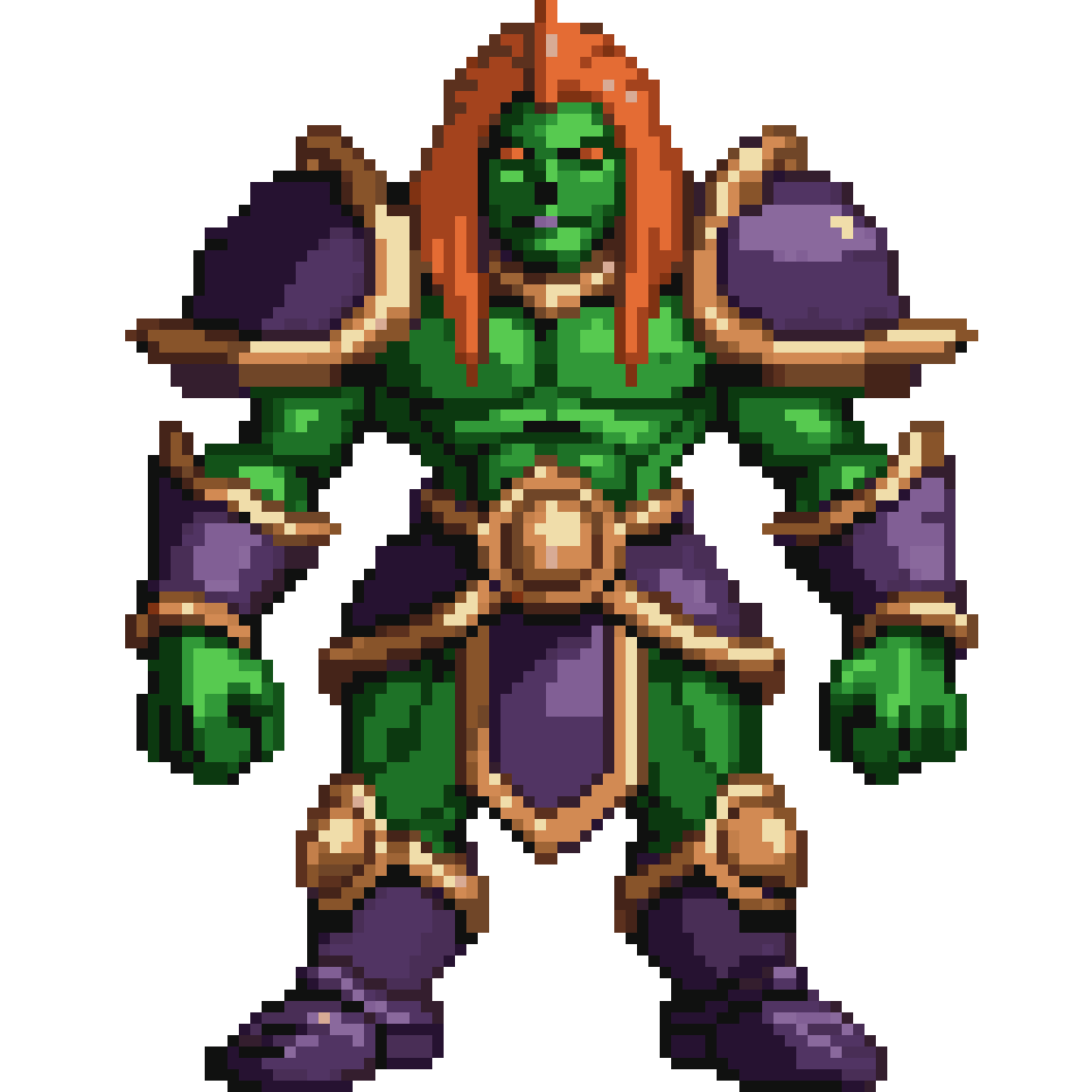 2D game sprite of Ganondorf designed as a Dark/Fighting type Pokémon, front-facing, standing pose, official Pokémon Ken ...