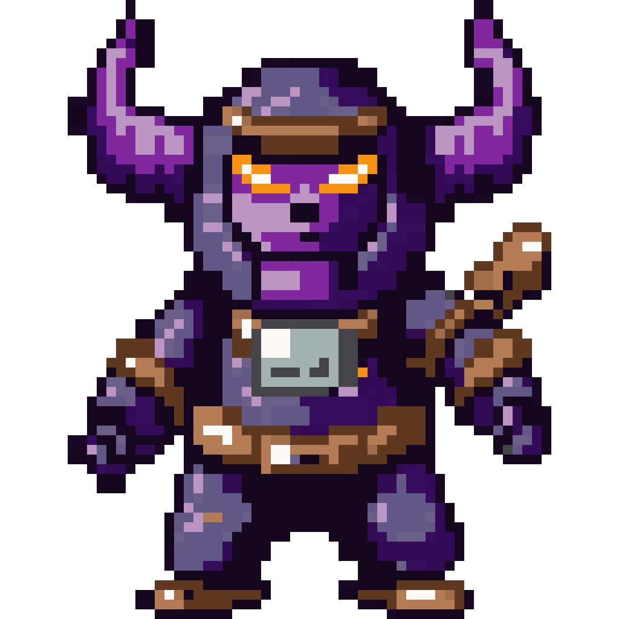 hazme una figura demoniaca con equipamiento minero, un pico, dinamita y casco minero, style 8bits