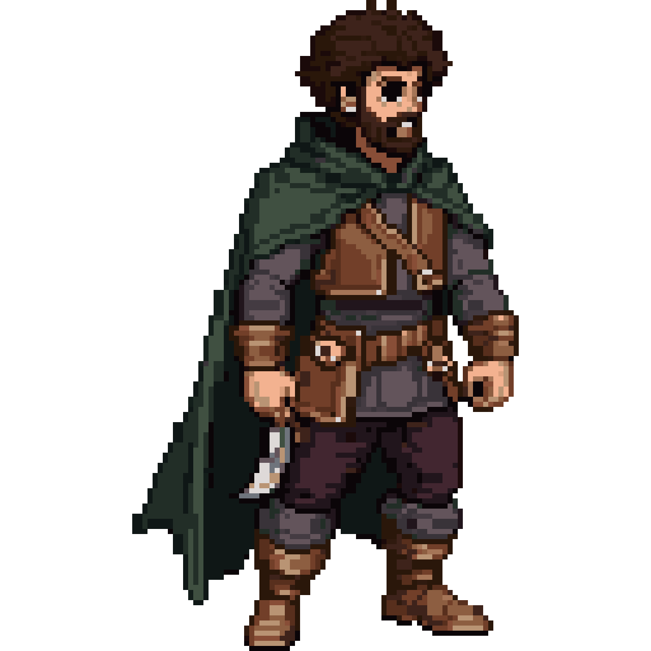 highly detailed pixel art character sprite, 16-bit or 32-bit style, at least 32 pixels tall, male human assassin, unkemp...
