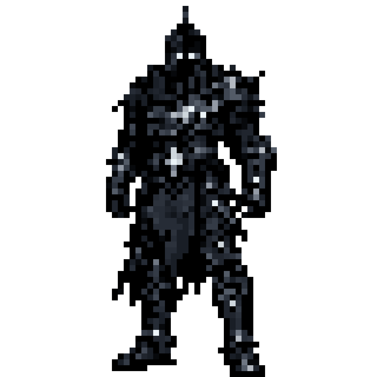 pixel art fantasy character, horned warrior, dark fantasy style, 64x64 sprite, front and side view, glowing eyes, sharp ...