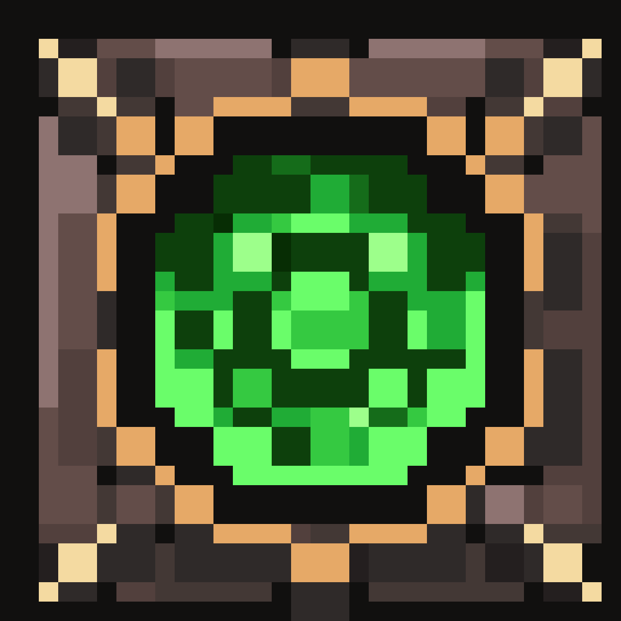 Medival low fantasy icon for hunter skill, green colors, 32x32, Black corners, fill all background with some effects. To...