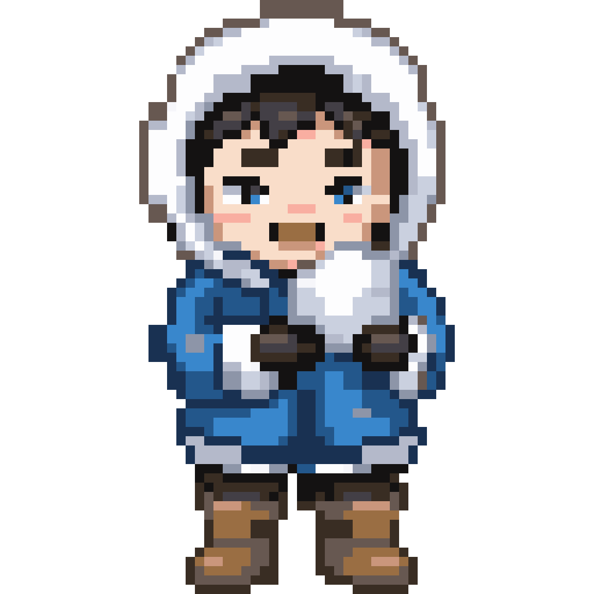 I inuit boy in a parka wiht the hood one in the style of pokemon games of the gameboy color era