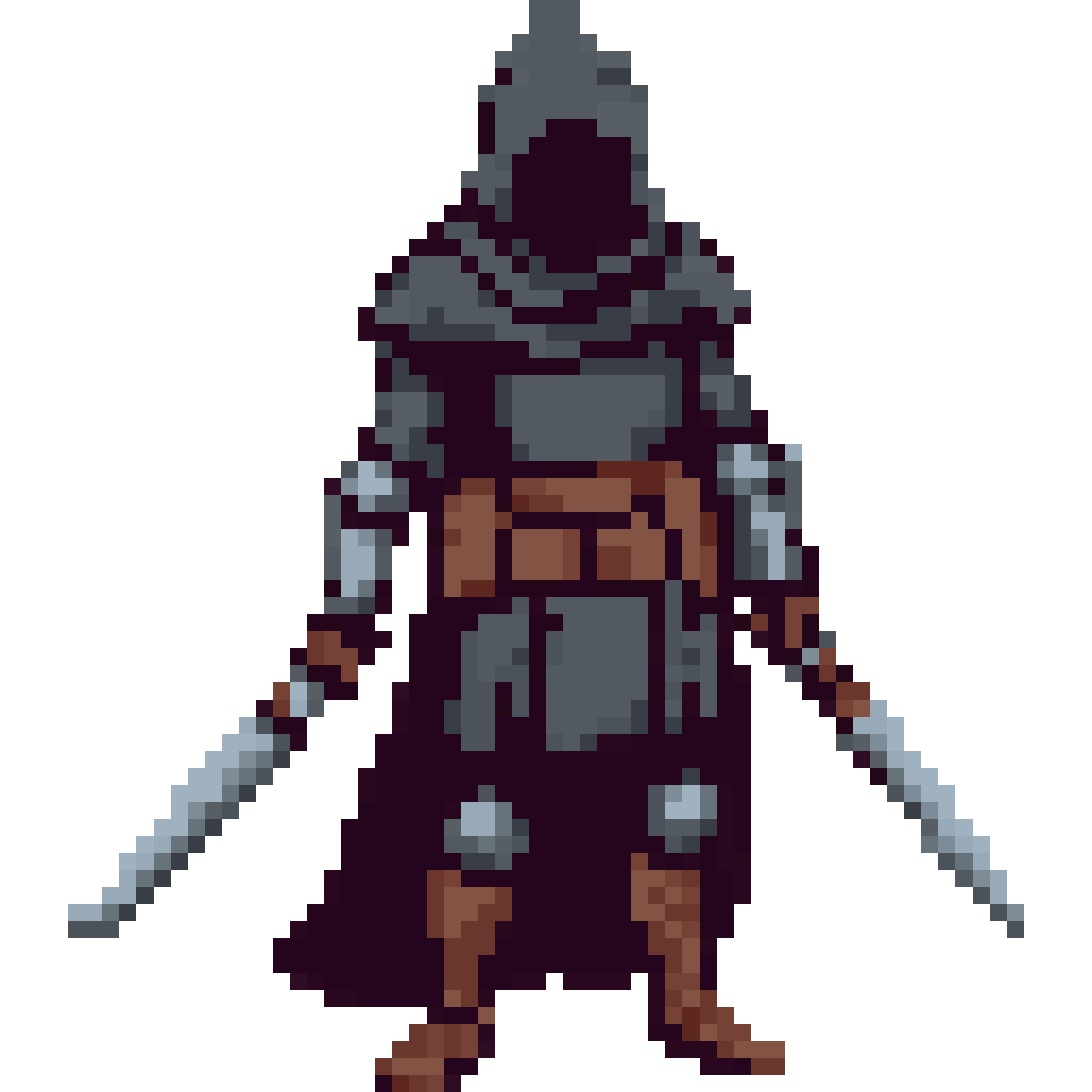 medival assain 16x16 piels with 2 daggers with black cape and hood for platformer fantasty rpg style