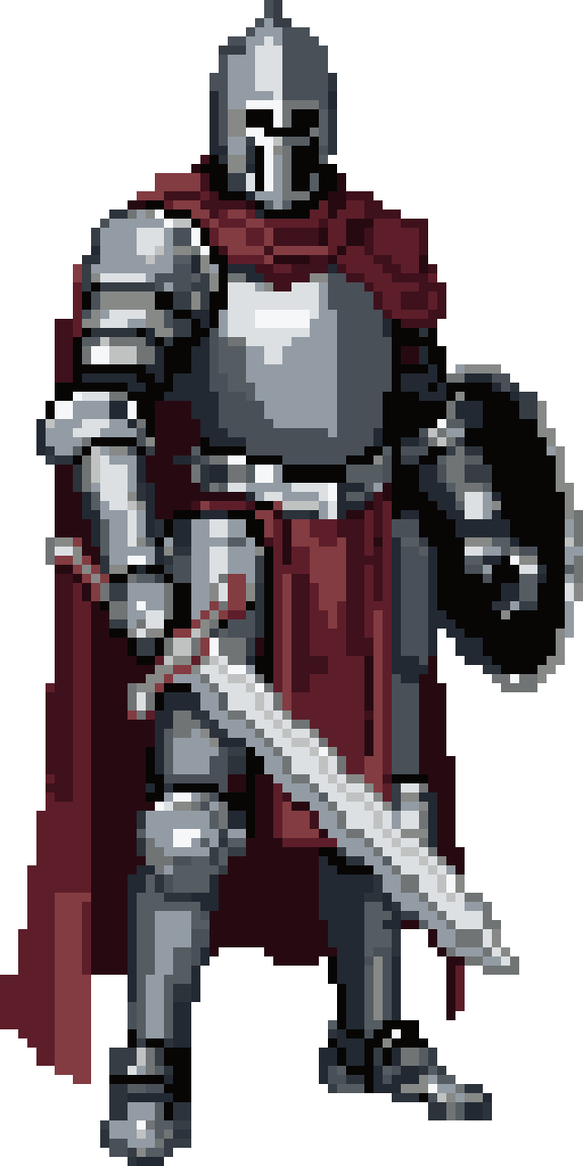medieval knight with silver armor, red cape, holding sword and shield, side view, fantasy RPG style