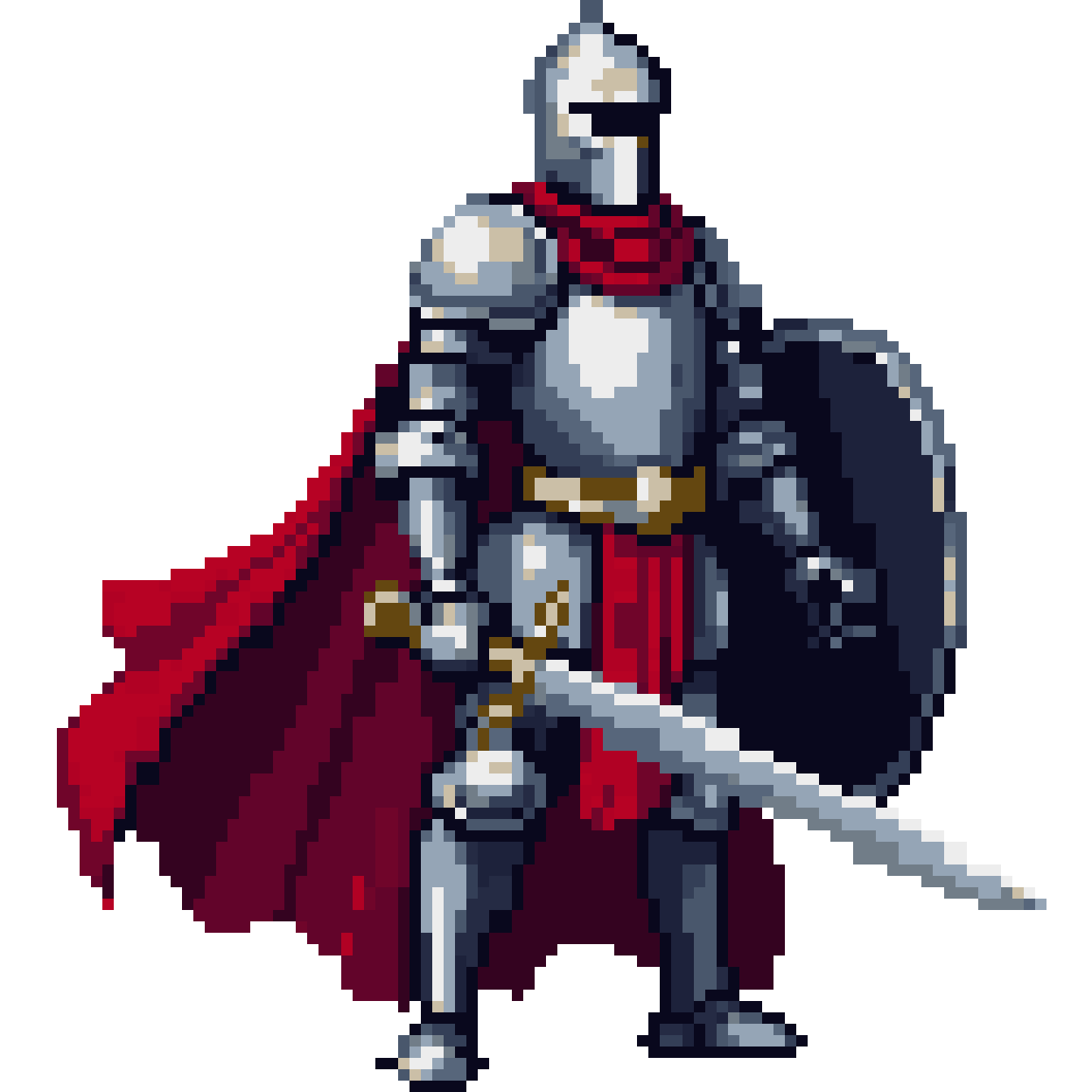 medieval knight with silver armor, red cape, holding sword and shield, side view, fantasy RPG Lord of the Rings style