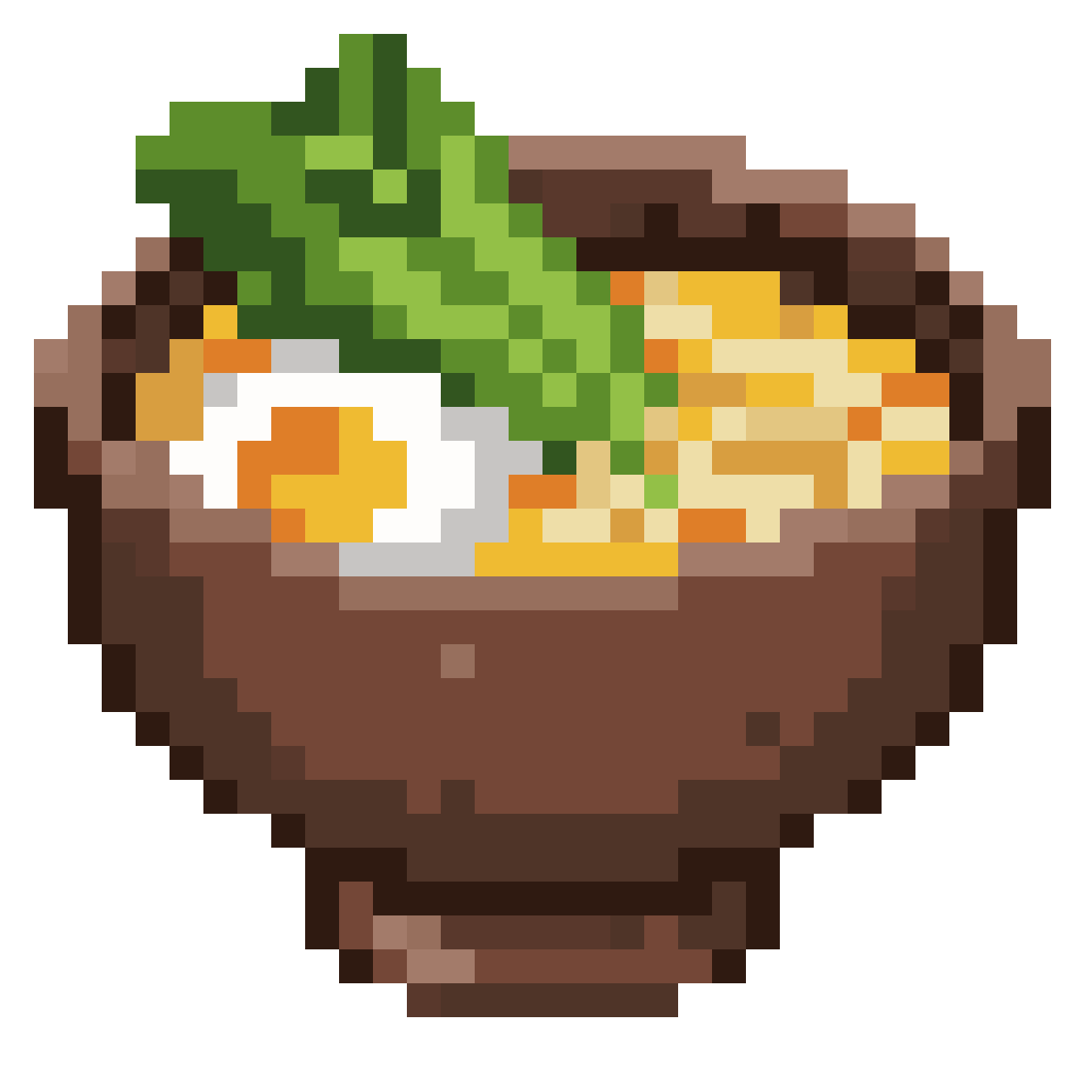 Genera un pixel art estilo Minecraft de unas pastas, específicamente pastas de ramen