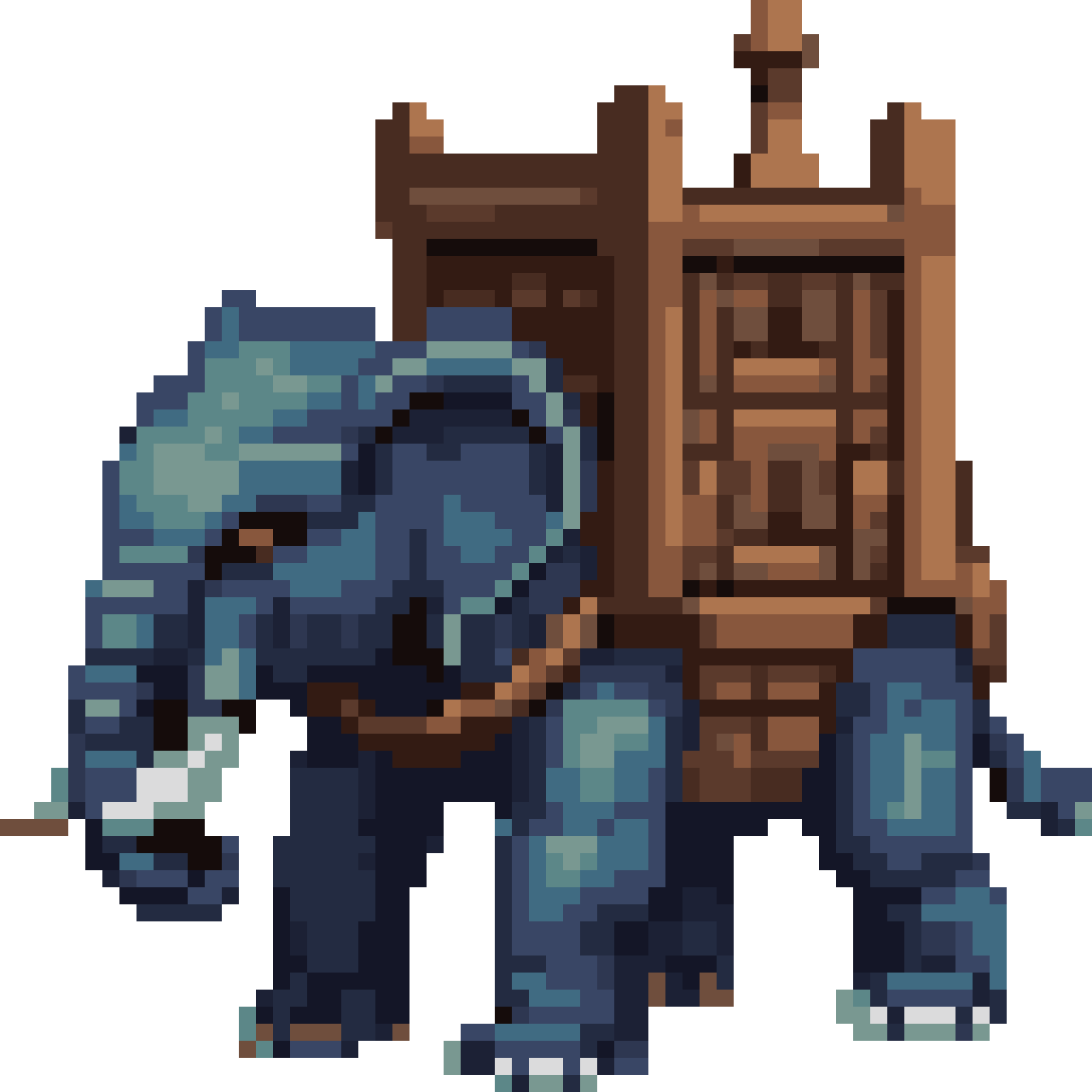 Orc war elephant with wooden tower on the back that has arrow slits. This is a top down view for RTS. This sprite is use...