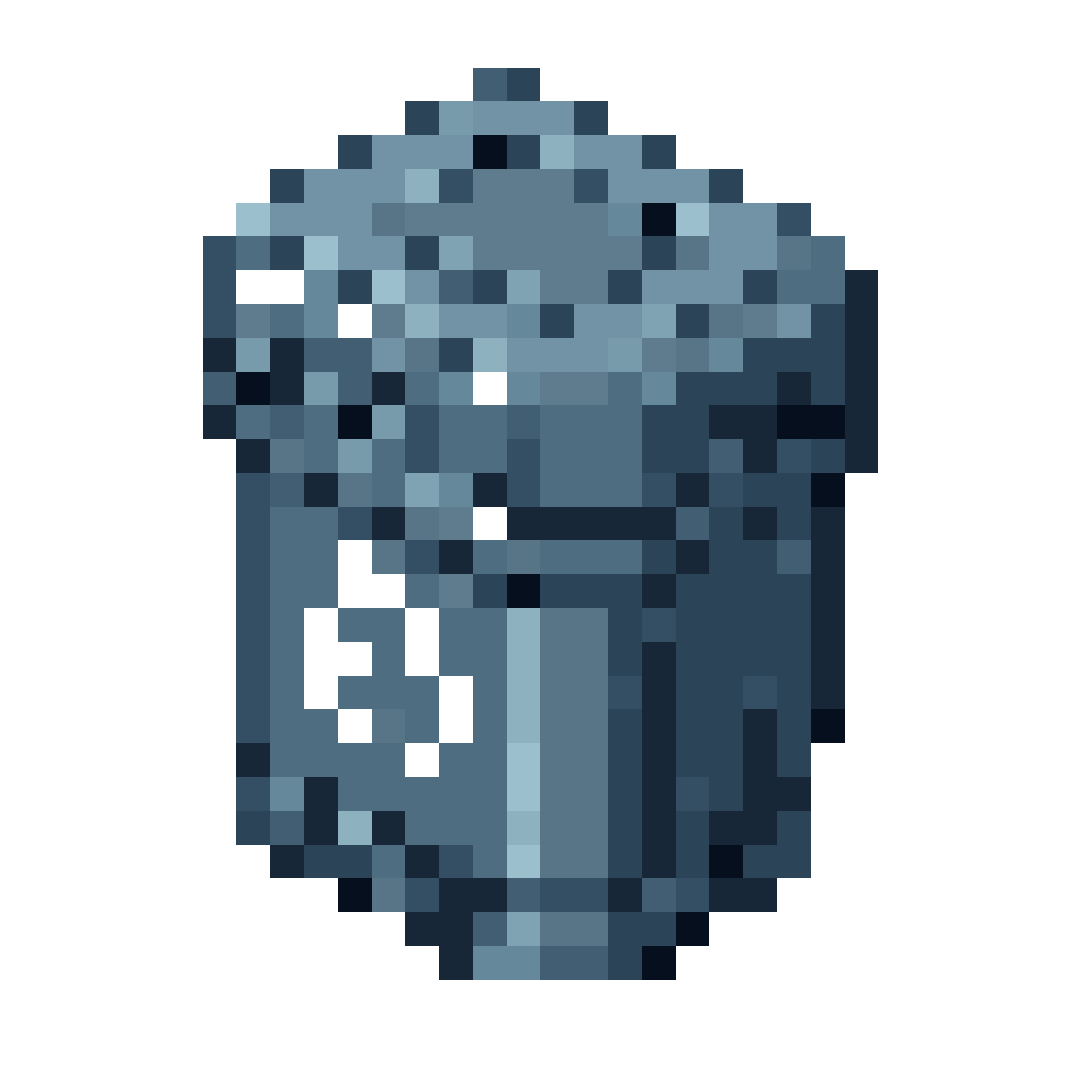 pixel art waste bin, sci-fi space station, metallic blue-grey, 3/4 top-down diagonal view, facing slightly left, lid v...