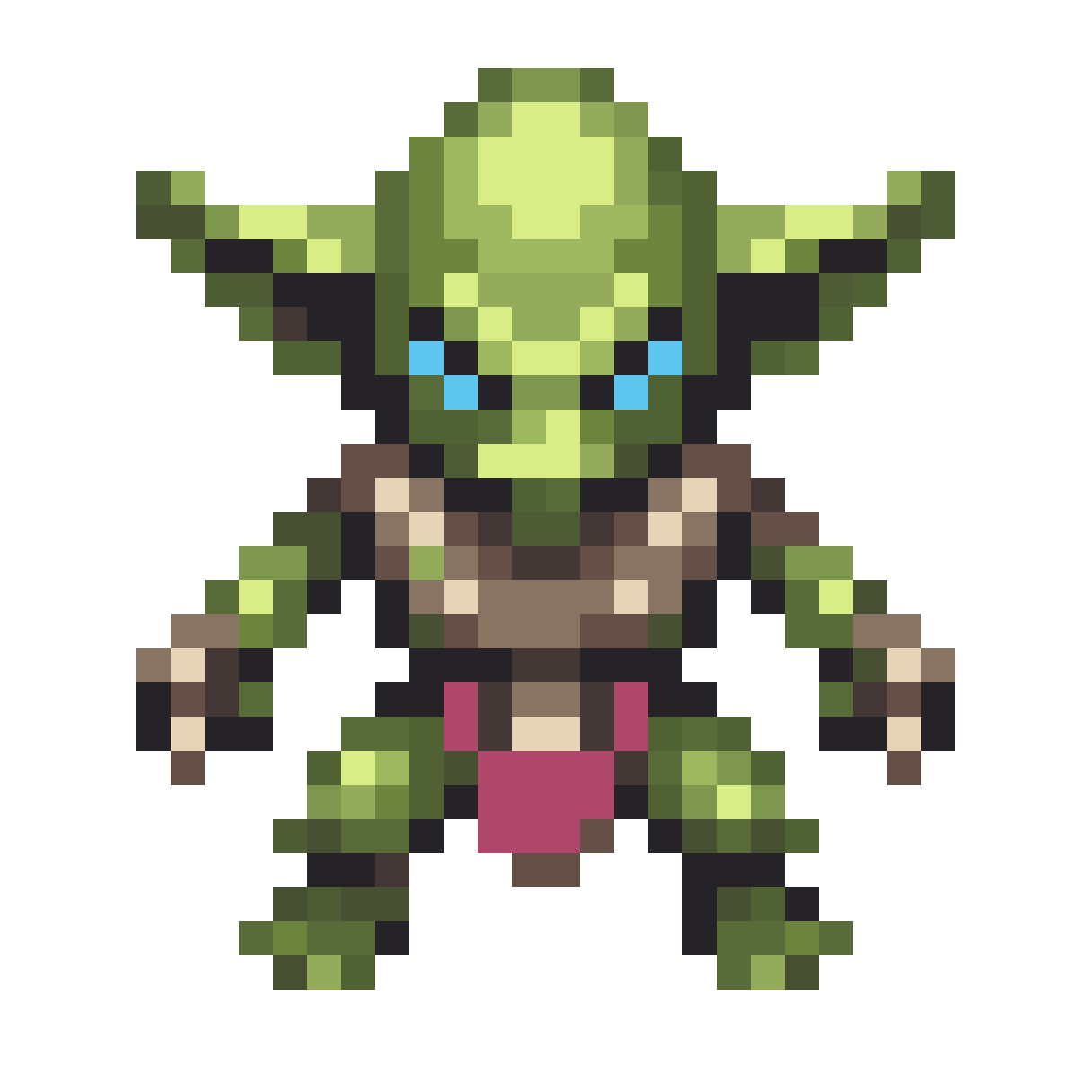 A retro rpg goblin for turn-based battle. Green skin, blue hilights.