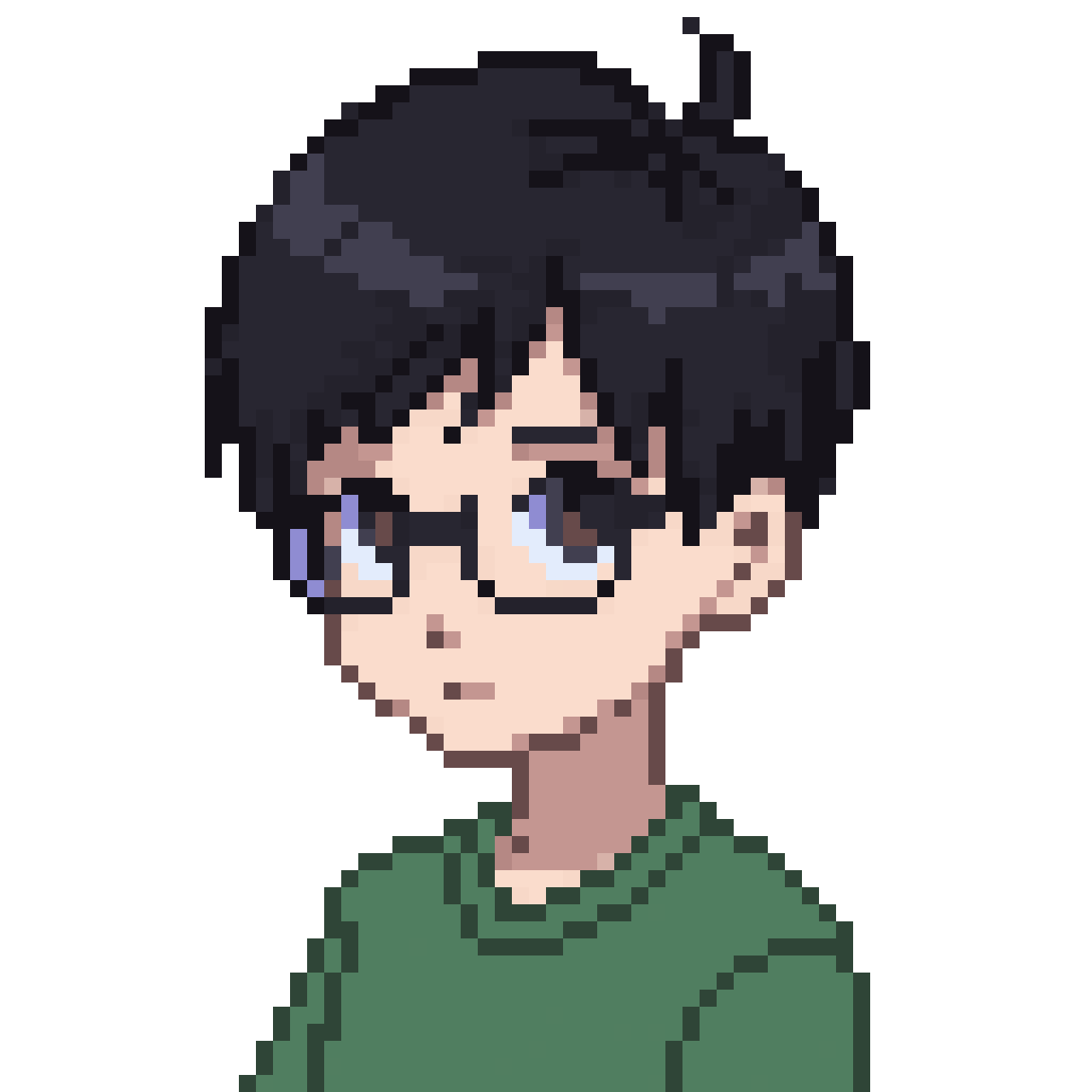 a boy with glasses, black hair. Green shirt. (School Boy)
