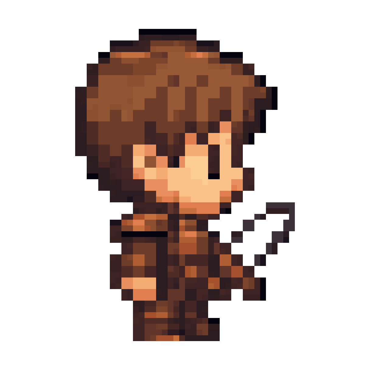 SD chibi young warrior, big head small body, leather armor and sword, side view, 32x32 pixel art sprite, cute fantasy RP...