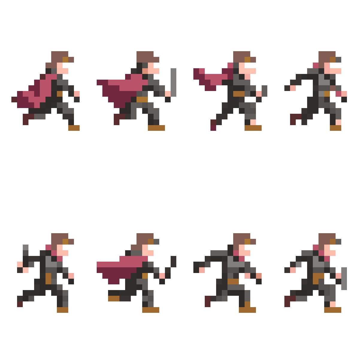 {"size":"1024x1024","prompt":"8-bit pixel art sprite sheet of a swordsman character running, side view. Include multiple...