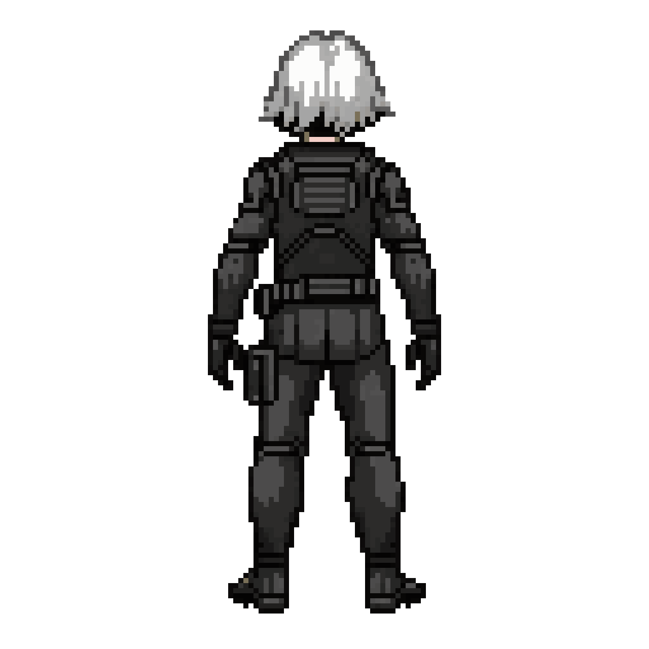 Detailed 16-bit south-facing orthographic character sprite, 1990s Prime adventure game aesthetic. POSTURE OVERRIDE: Symm...