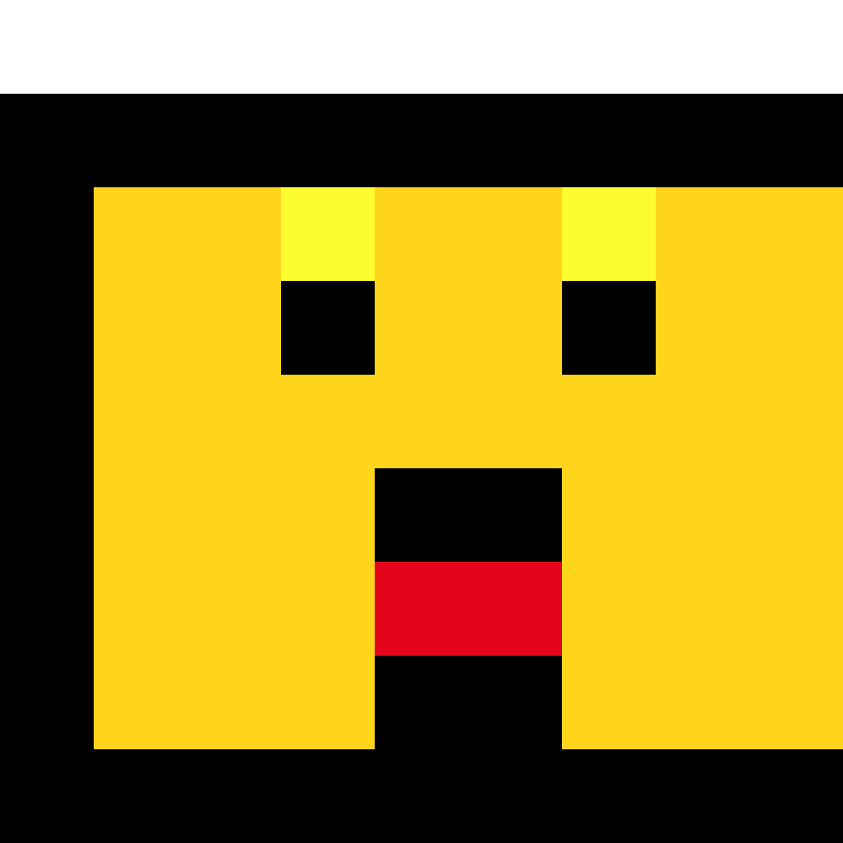 Pixel art sprite, 9x9 pixel grid, square face character, pure black background, transparent corners (top-left, top-right...
