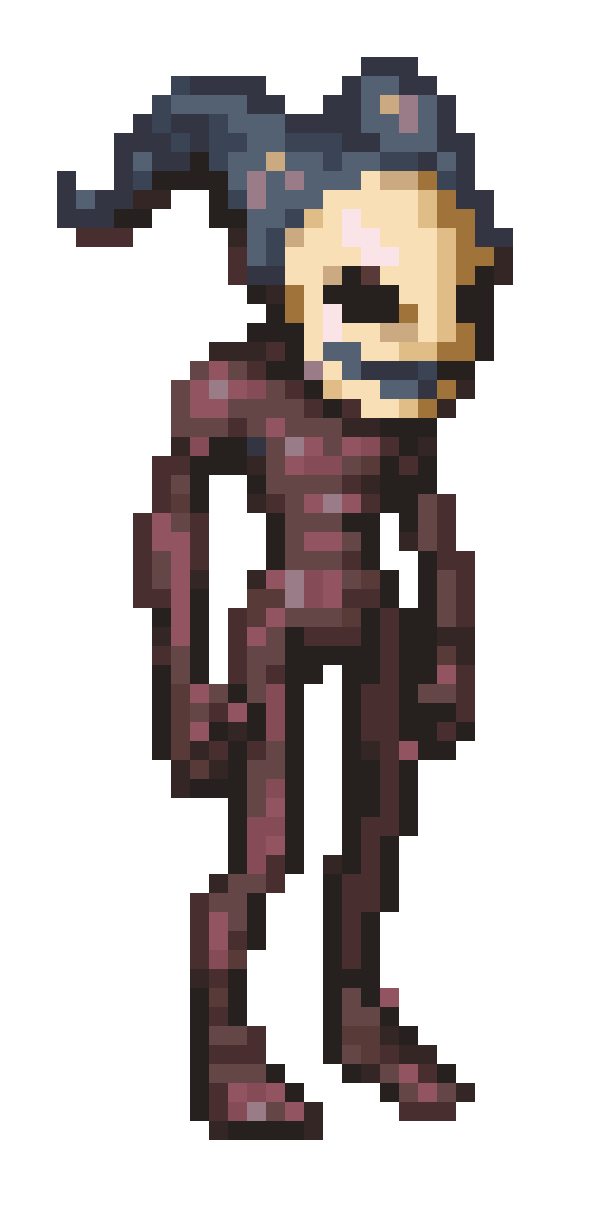 tall dark brown skinny imp wearing a huge ivory grinning mask
