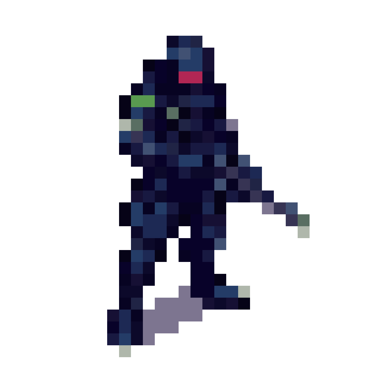 Pixel art 32x32 ou 64x64 estilo top-down shooter survival horror, cores escuras, neon verde e vermelho sangue, fundo tra...