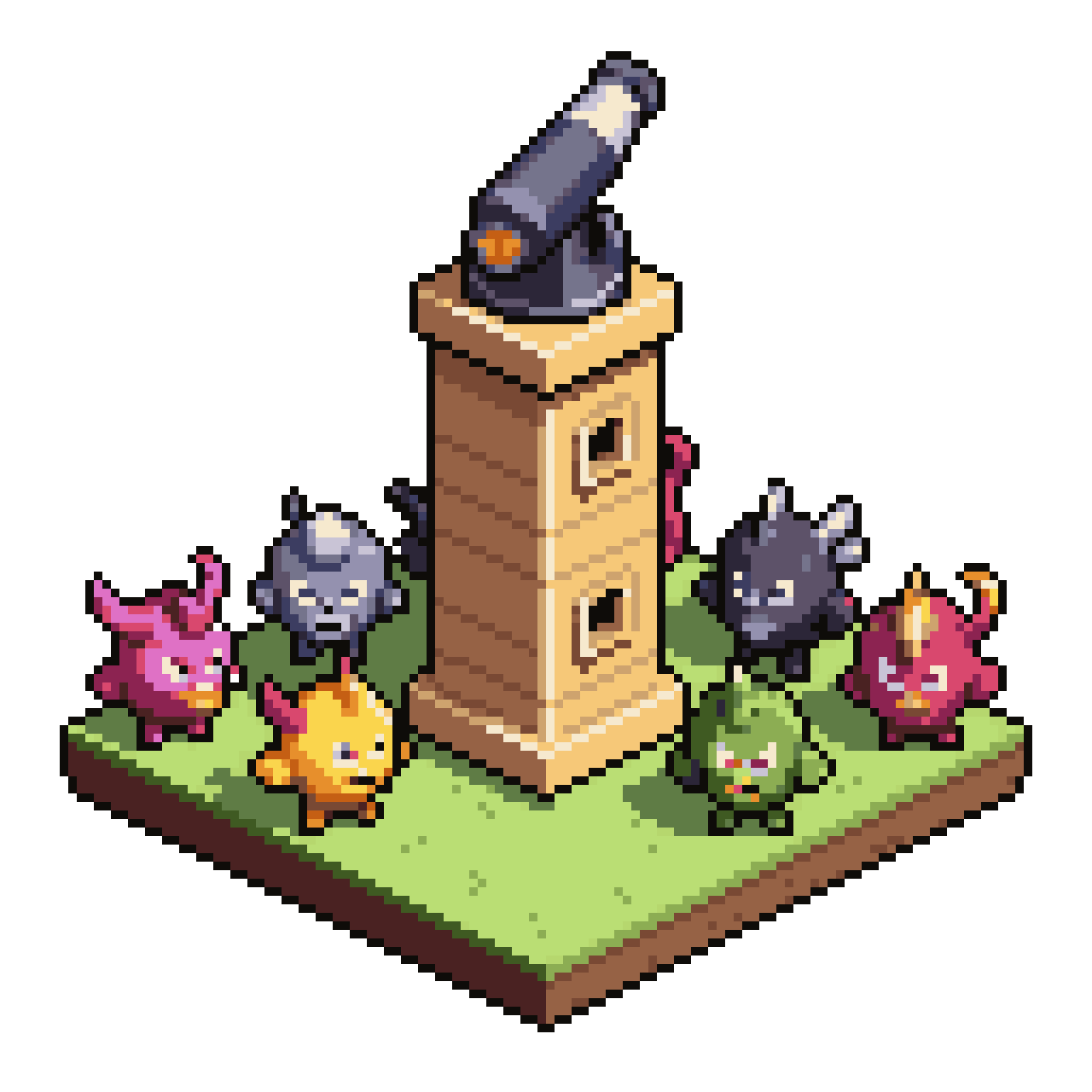 create an icon for a 2d tower defense game, the game is a 2d like mario bross with a tower in a middle and enemies came ...