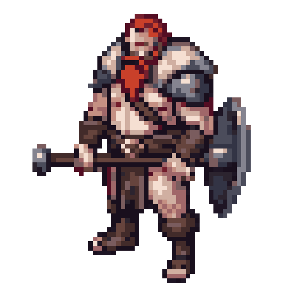 pixel art RPG warrior, 48x48px HD modern pixel art, male viking berserker age 35, large muscular build, long red hair an...
