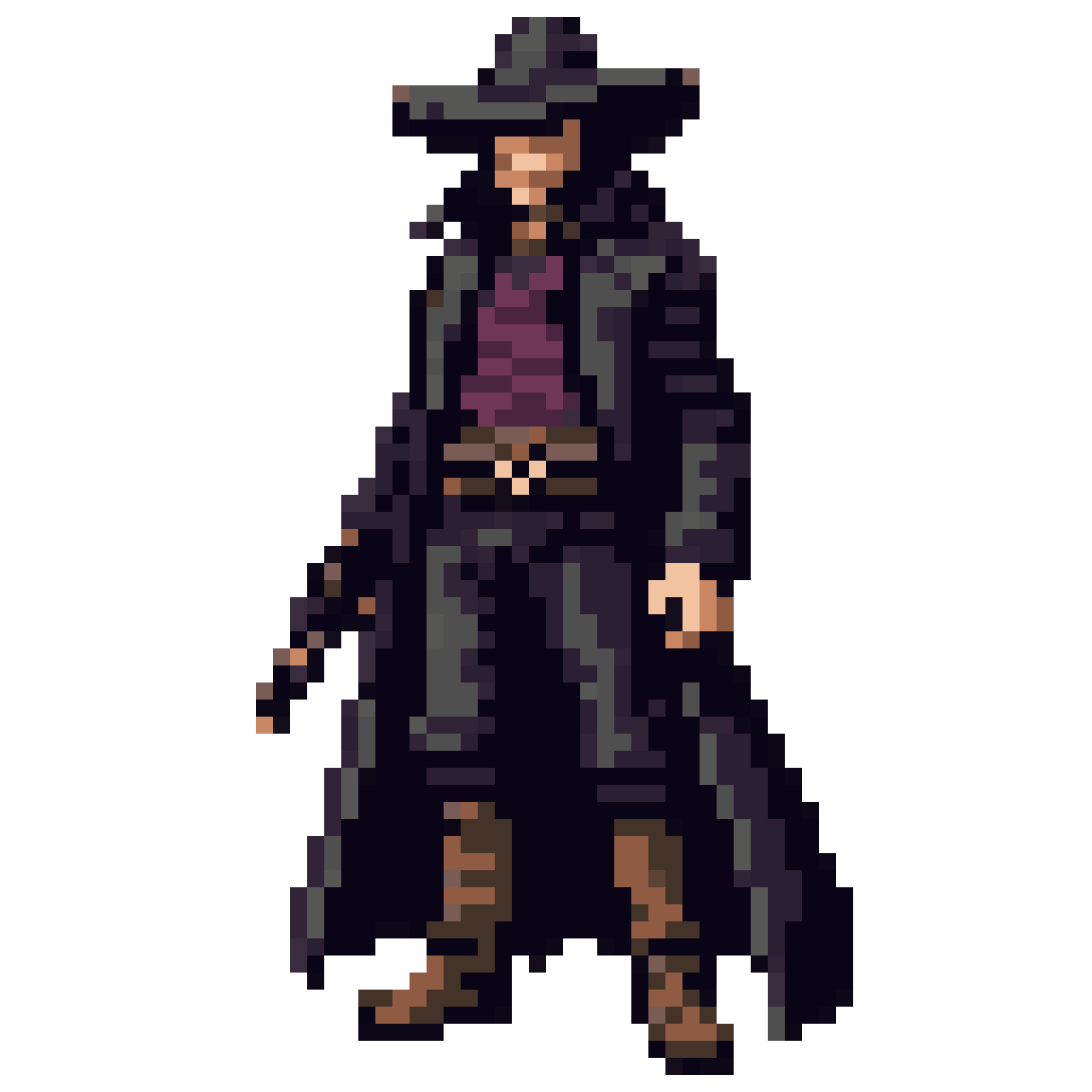 wild west gunslinger, dark mysterious vibe, face partially concealed by his hat, pixel art