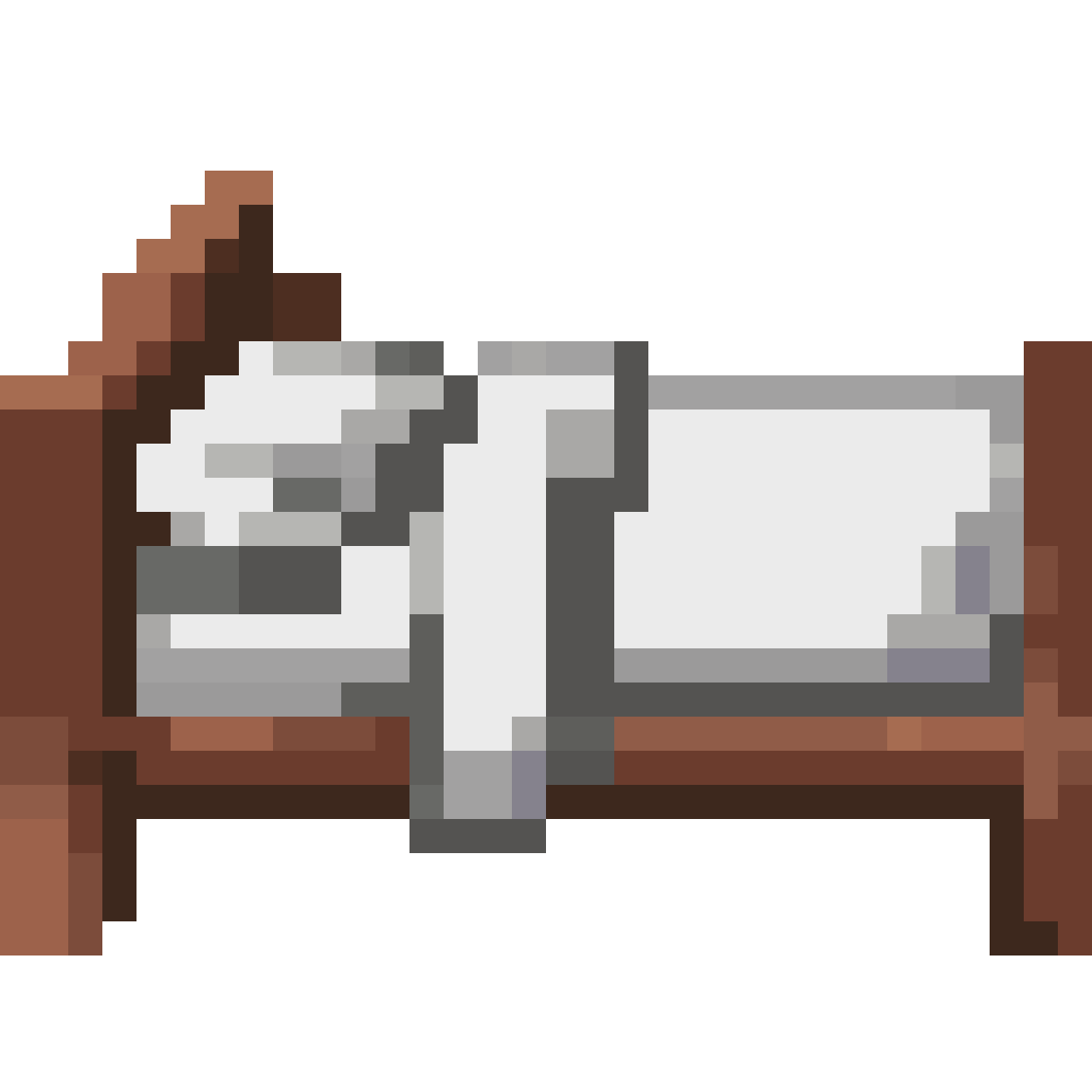 一张木质的床铺,有洁白的床单与被褥,古典学院风格。完全侧面的视图。用于横版游戏场景搭建
